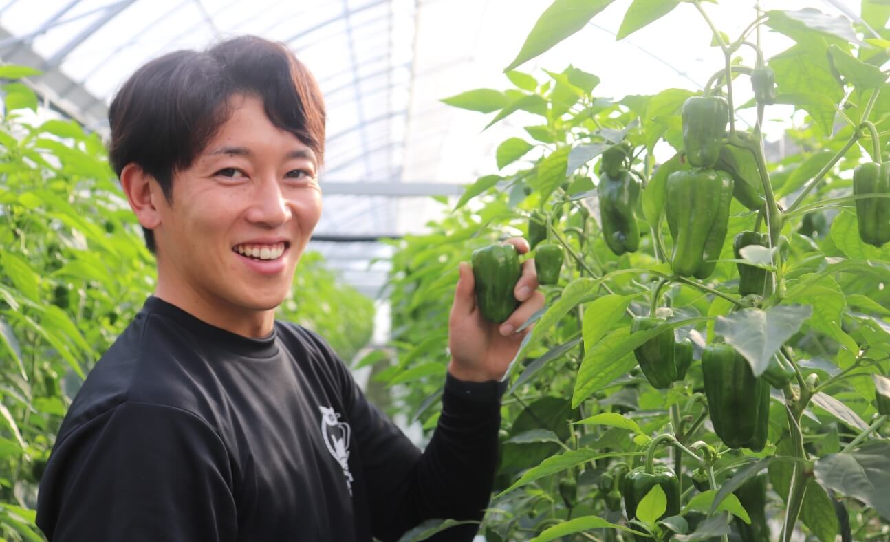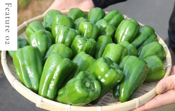 澄んだ空気と、豊かな水。太陽をたっぷり浴びて育ったピーマンは、みずみずしくて、香りがいい。